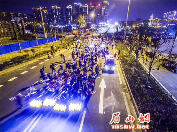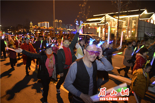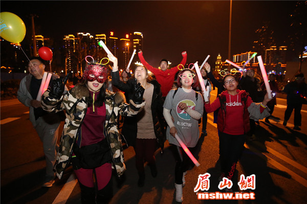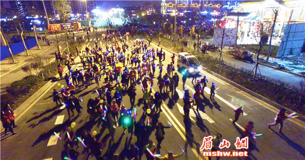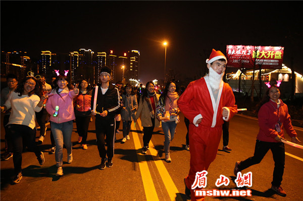 眉山网讯(记者 蒋萍 林茂春 钟烨)12月24日晚,由眉山网、眉山在线APP发起,万景·东坡院子主办的“全民健身,荧光夜跑”活动在眉山城区老泉桥处开跑。