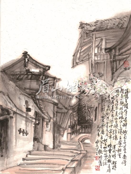 他加入眉山国画院以后,创作激情高涨,非常勤奋。珍惜每次写生的机会,抓紧时间争取比别人多画一些作品。