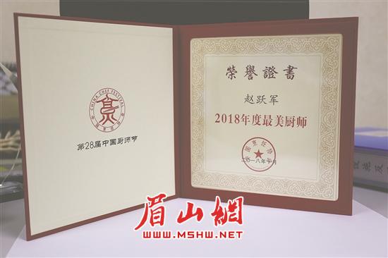 幺麻子公司董事长赵跃军被中国烹饪协会授予中国十大“2018年度最美厨师”称号。