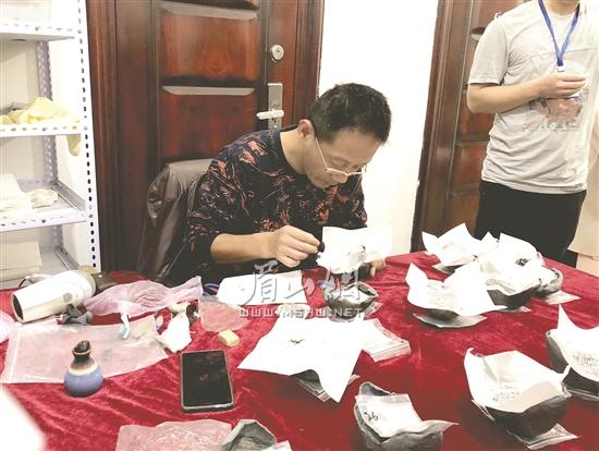 科研人员拓印银锭文字。