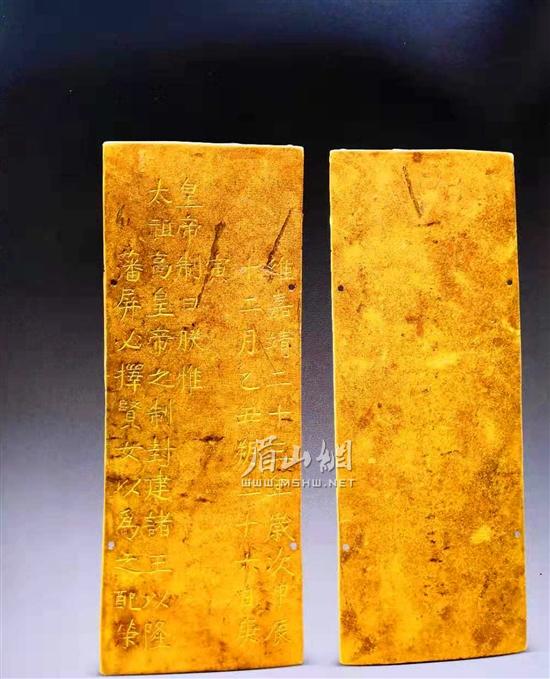 明代金册:长24.2厘米、宽9.25厘米、厚0.55厘米、重量1470克