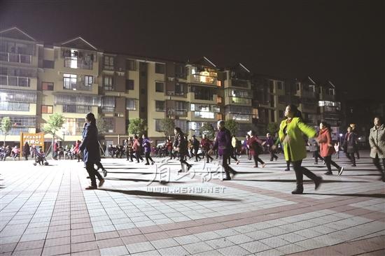 天刚擦黑,路灯点亮了整个广场。一首动感的舞曲——《美好生活不是梦》从广场前方传来,好似邀约的“集结号”,撩动起春天的夜色。先是三五成群,很快聚拢四五十人,人们在悠扬悦耳的旋律下起舞,开启欢乐夜生活。