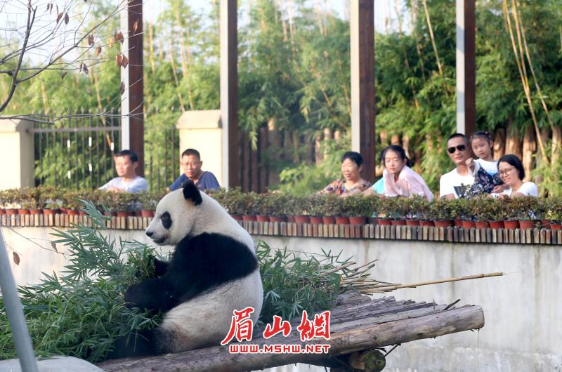 青神县中国竹艺城熊猫馆的熊猫成为游客观赏的热点。