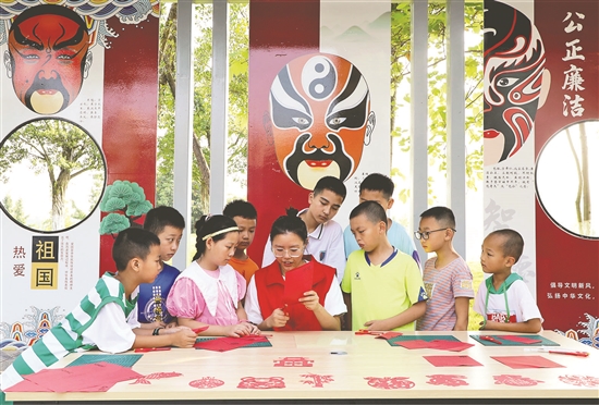 当天,在“陶艺伴童年”文明实践主题活动中,仁寿县非遗传承人蔡中云耐心地教导孩子们将手中的陶泥揉、搓、按、压,形成各种形状,然后又将其拼凑成一幅完整的作品。欢声笑语中,时间悄悄流逝,陶艺文化也潜移默化地留在了孩子们心中。