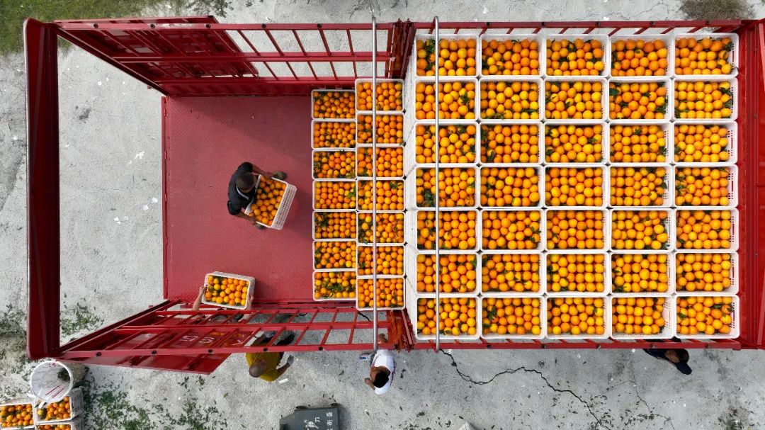 秋风秋雨秋渐凉,又是一年橘黄时。近日,眉山天府新区锦江镇天宫村7000余亩柑橘进入成熟期。村内一处果园里,果农余志宗带着十余名工人忙得热火朝天,摘果、搬运、选果、装箱……在他们的协作配合下,一箱箱柑橘被装箱搬上停在果园旁的外地牌照卡车,一派喜人的丰收景象。