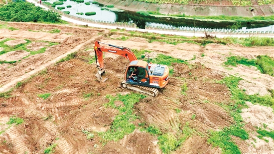 “河湾村今年腾退土地670余亩,现在基本完成了腾退工作,已经进入了田型调整阶段,目前我们正督促施工方全力以赴加快田型调整施工进度,确保不误农时实现满栽满插。”张场镇河湾村党委副书记周建容说。
