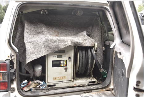 彭山公安经过对被盗柴油车辆及案发周边勘查,发现柴油被盗时间为凌晨时分,嫌疑人趁货车司机熟睡之时,利用抽油泵将油箱内柴油抽走的方式实施盗窃。