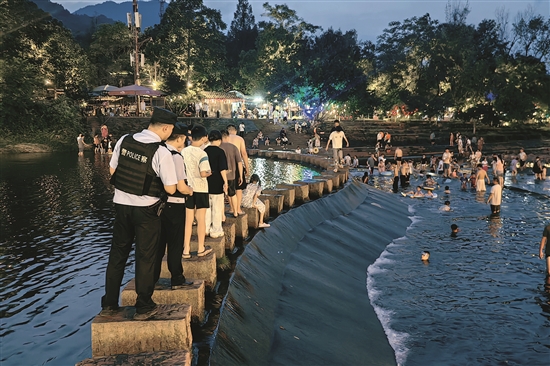 入夏以来,洪雅县公安局聚焦夜间安全,动态提升景区夜市、夜宵聚集区等警情高发区域巡防等级,织密全时空守护网,为旅游“夜经济”注入平安动能。