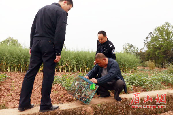 眉山网讯(记者 赵娜娜 文/图)4月3日至9日是我省第39期爱鸟周;鸟儿是人类的朋友,爱鸟护鸟人人有责。3月31日,丹棱县森林公安局5名民警和张场镇爱鸟人士一起来到该镇长流村安溪河,在绿树掩映的河边放飞了其部门刚挡获不久的30只麻雀,进一步推进生态环境保护工作。