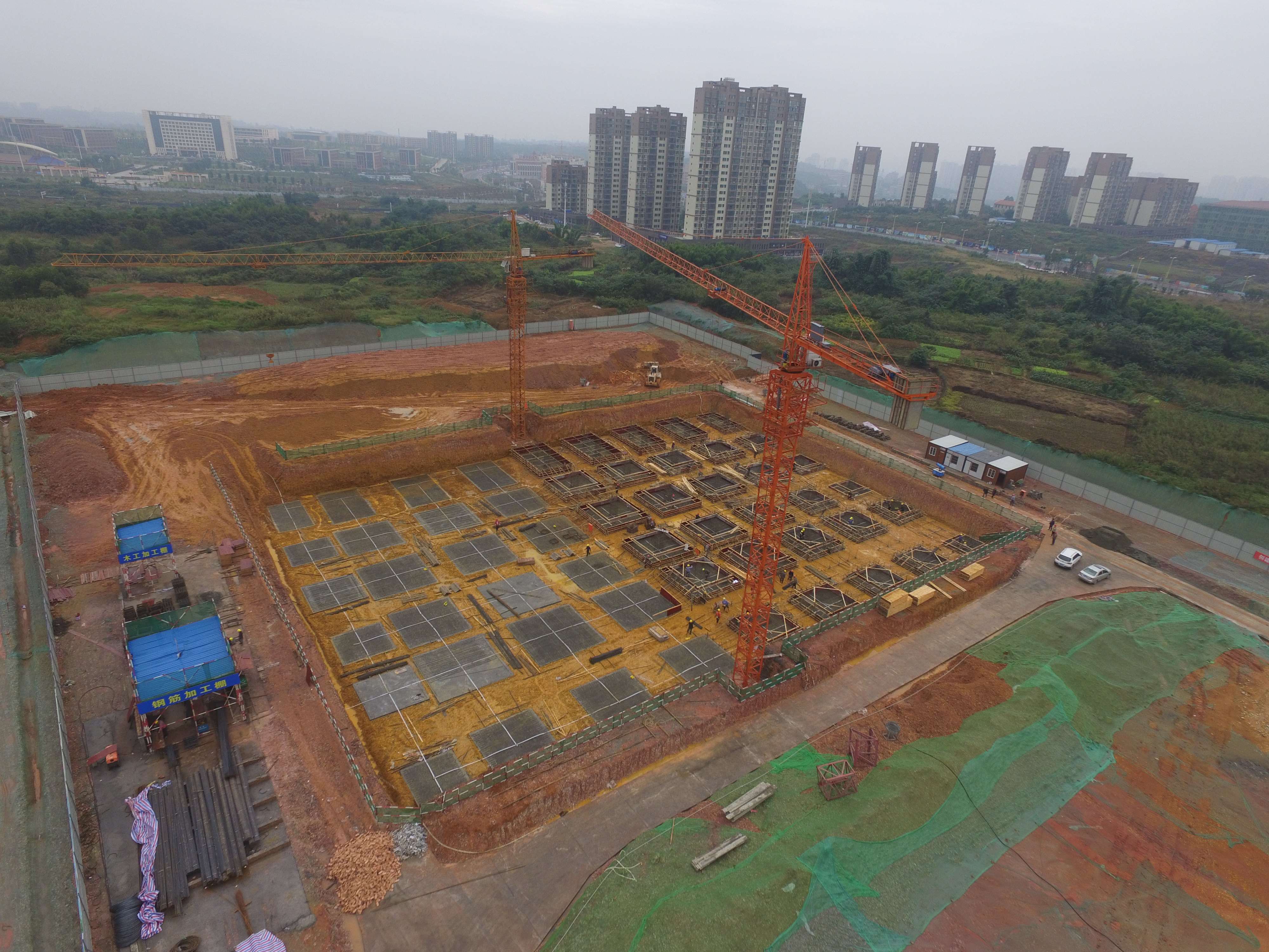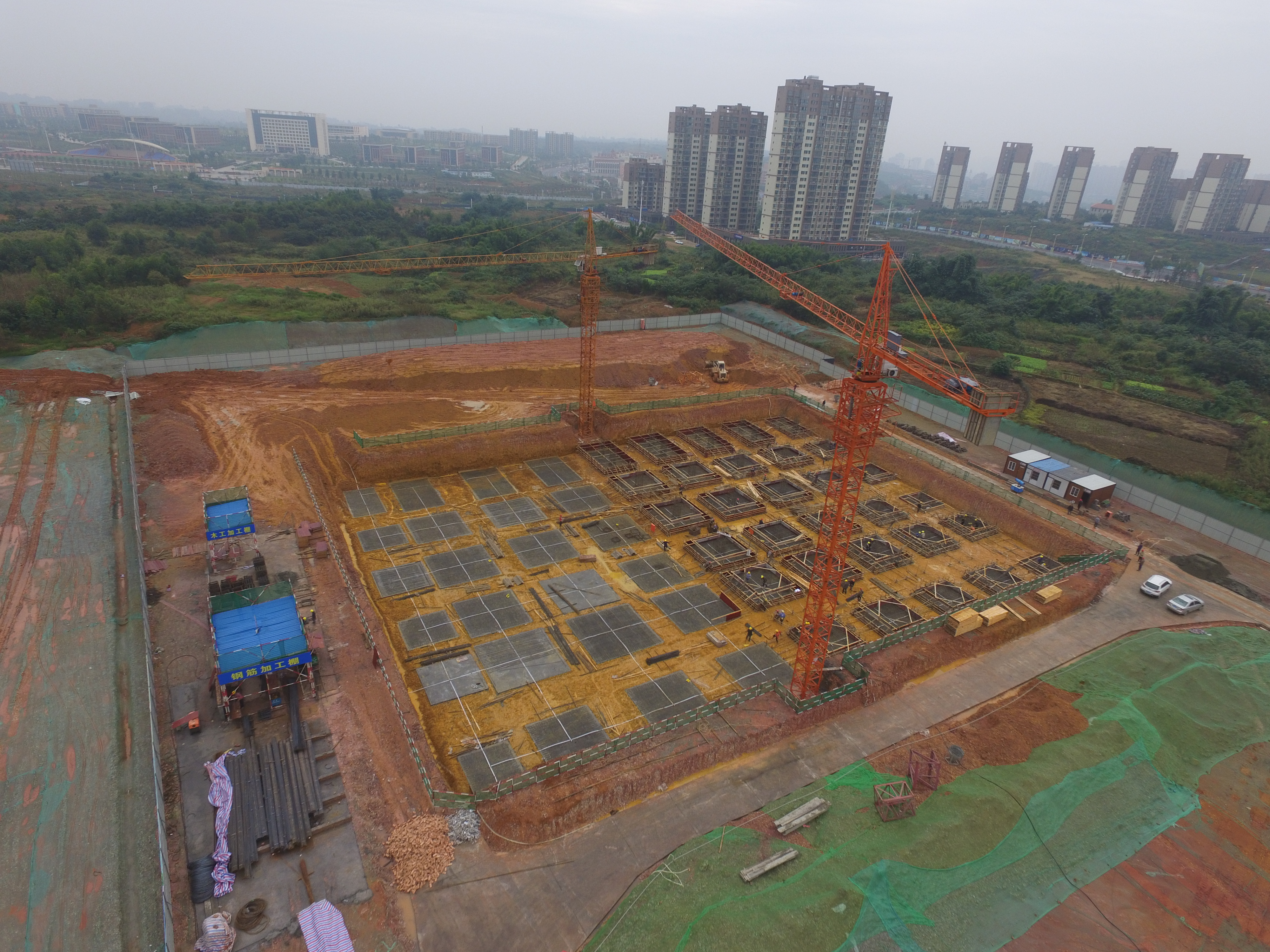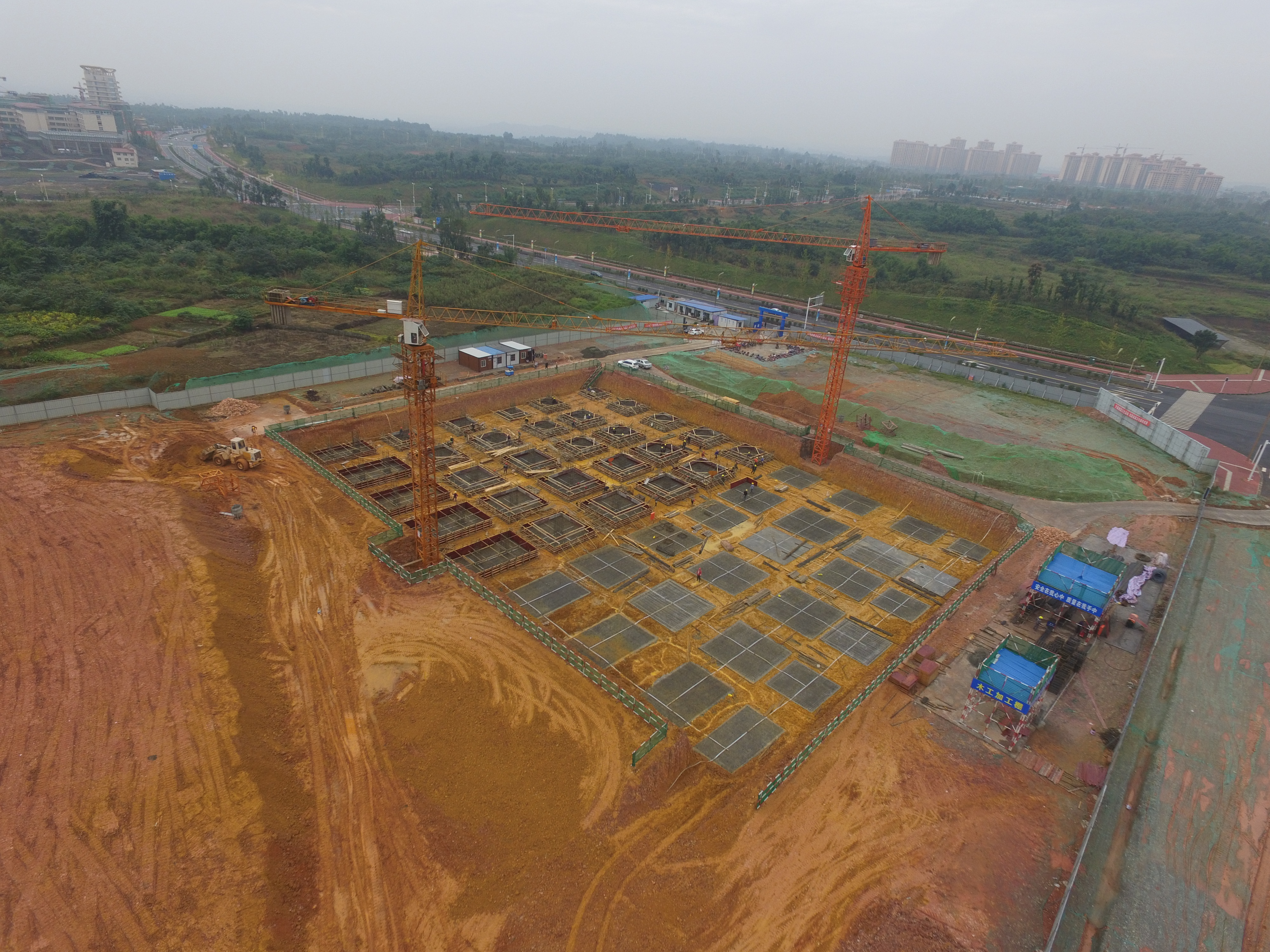 2017年10月12日,眉山网记者在岷东新区丹棱路以西,华为大数据中心一期建设工地施工现场看到,工人们正在抓紧施工。