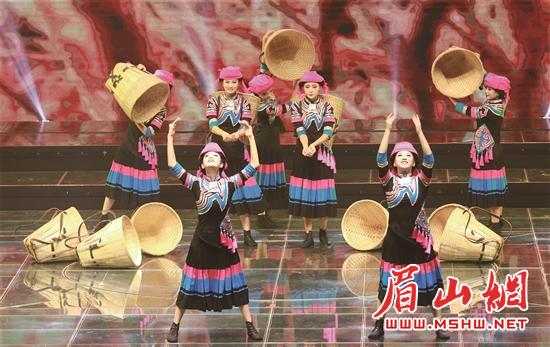 我市青神县初级中学学生表演的舞蹈节目《编》。