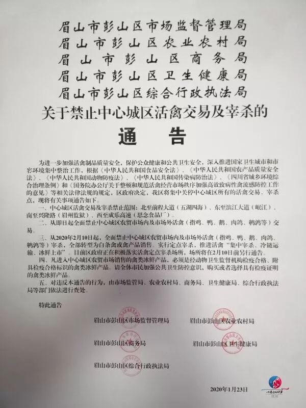 关于禁止中心城区活禽交易及宰杀的通告