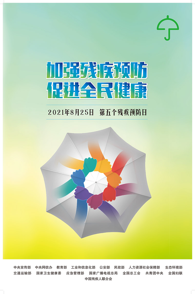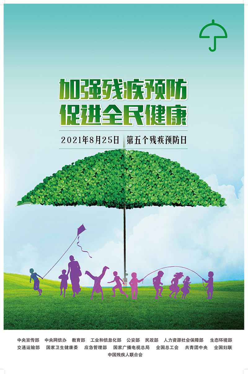 2021年8月25日是全国第五个残疾预防日。今年是中国共产党成立100周年,是“十四五”开局之年,为深入贯彻习近平总书记关于残疾预防工作的重要指示批示精神和党中央、国务院决策部署,进一步加强残疾预防宣传教育,增强全社会残疾预防意识,为“十四五”工作开好局、起好步创造良好氛围,中国残联、中央宣传部等16部门决定联合开展第五次残疾预防日宣传教育活动。