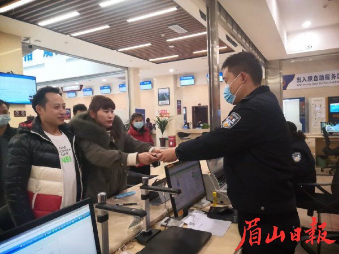 2月10日,在丹棱县公安局驻市民服务中心户籍窗口,拿着新签发的居民户口簿,来自安徽的吕女士高兴之情溢于言表。