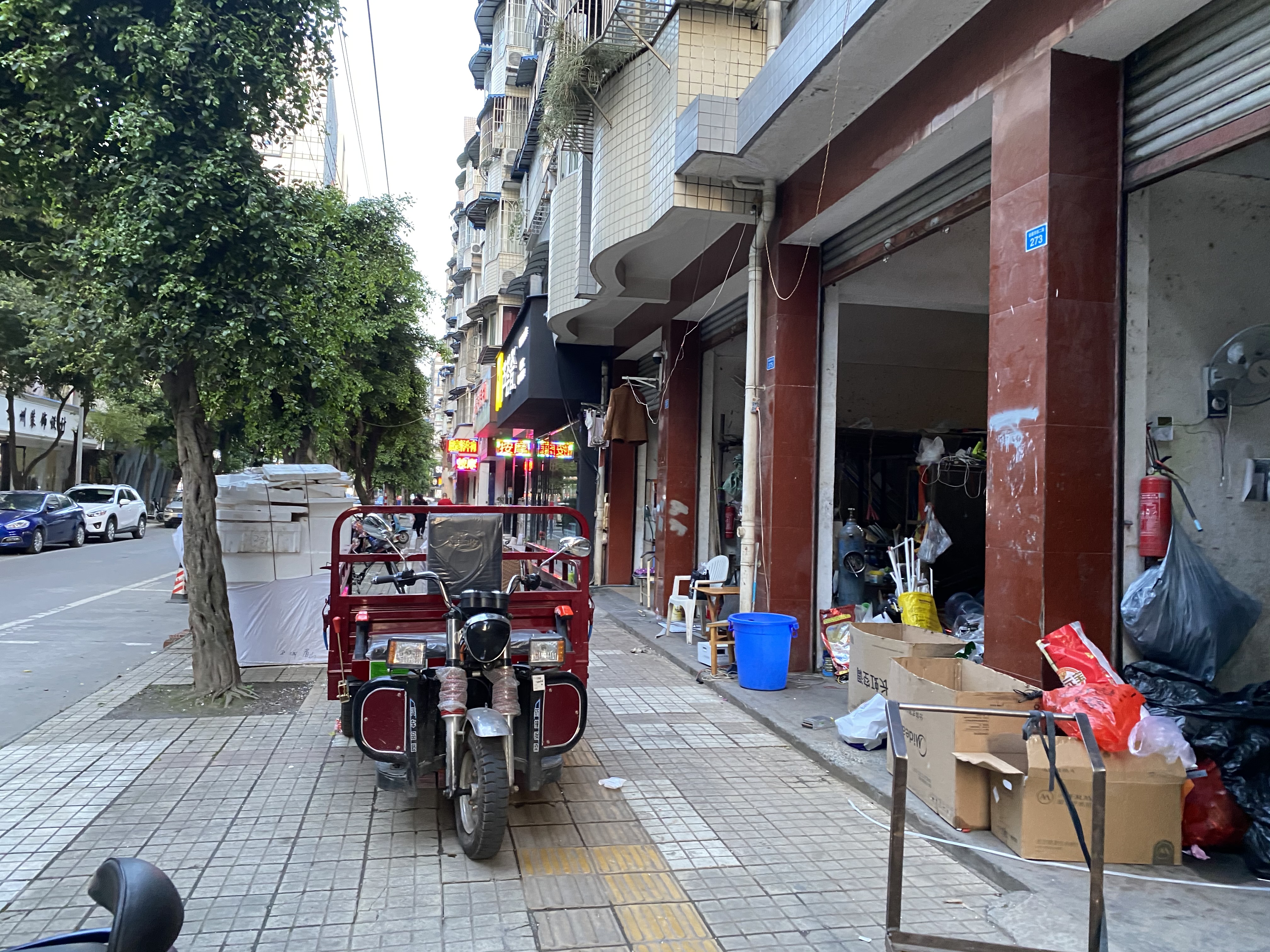在相邻的珠市街东二段,地面随处可见白色垃圾、烟头、口罩等,街面卫生较差,人行道地砖同样有明显的松动和破损。