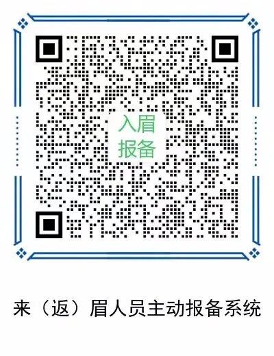 入(返)眉人员可采用天府市民云APP报备、关注“天府市民云眉山站点”公众号报备、微信扫码报备(二维码见下方)三种方式进行报备。大家可以根据自身实际情况,选择最便捷的方式进行报备。