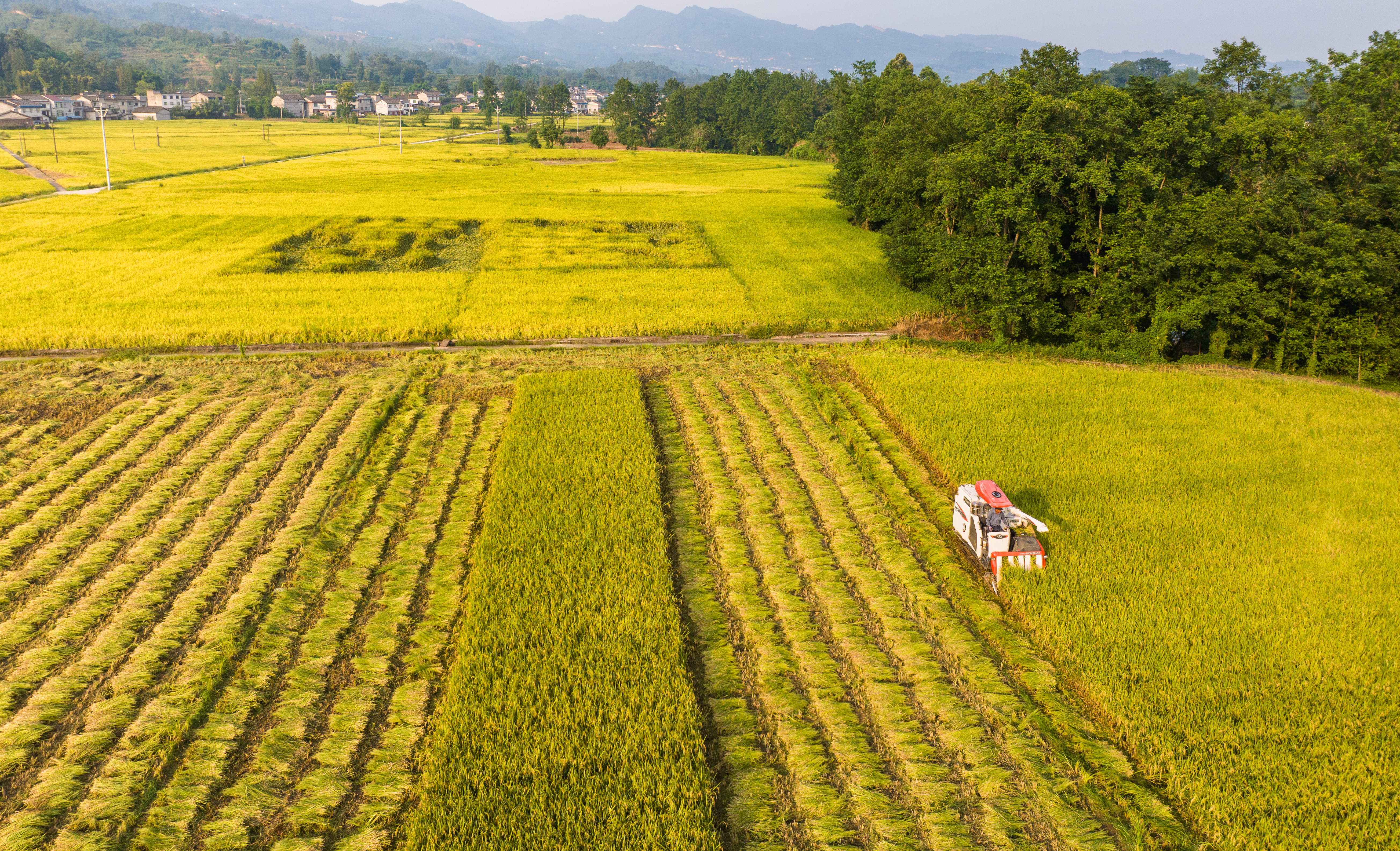 美田弥望,稻谷飘香。连日来,眉山的“拥军田”进入丰收季:金黄的稻田,来回穿梭的收割机、退役军人脸上的笑容……构成了“天府粮仓”靓丽的“丰”景。
