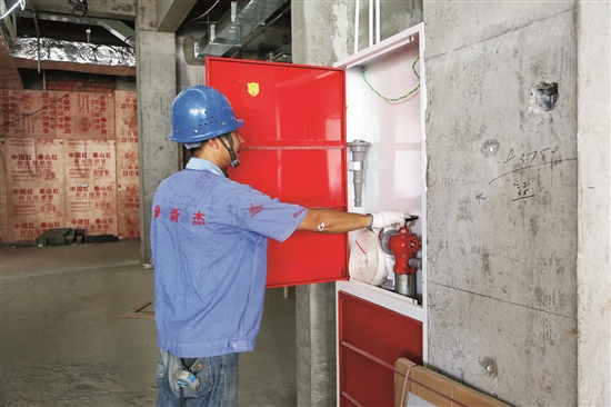 人在检查消防装置。