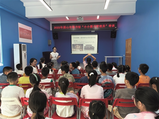 6月30日,56名小学生走进眉山市图书馆,参加暑期“小小图书管理员”少儿实践活动,通过专业培训和实地体验,了解图书馆的运作,并将在暑期以“管理员”身份参与志愿服务。