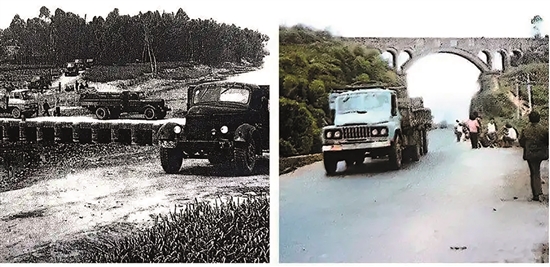 20世纪80年代,眉仁公路改造前(左图)后(右图)对比。
