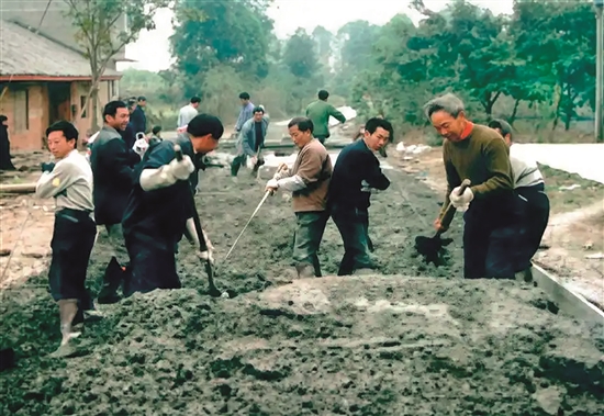 20世纪80年代,眉山修路场景。
