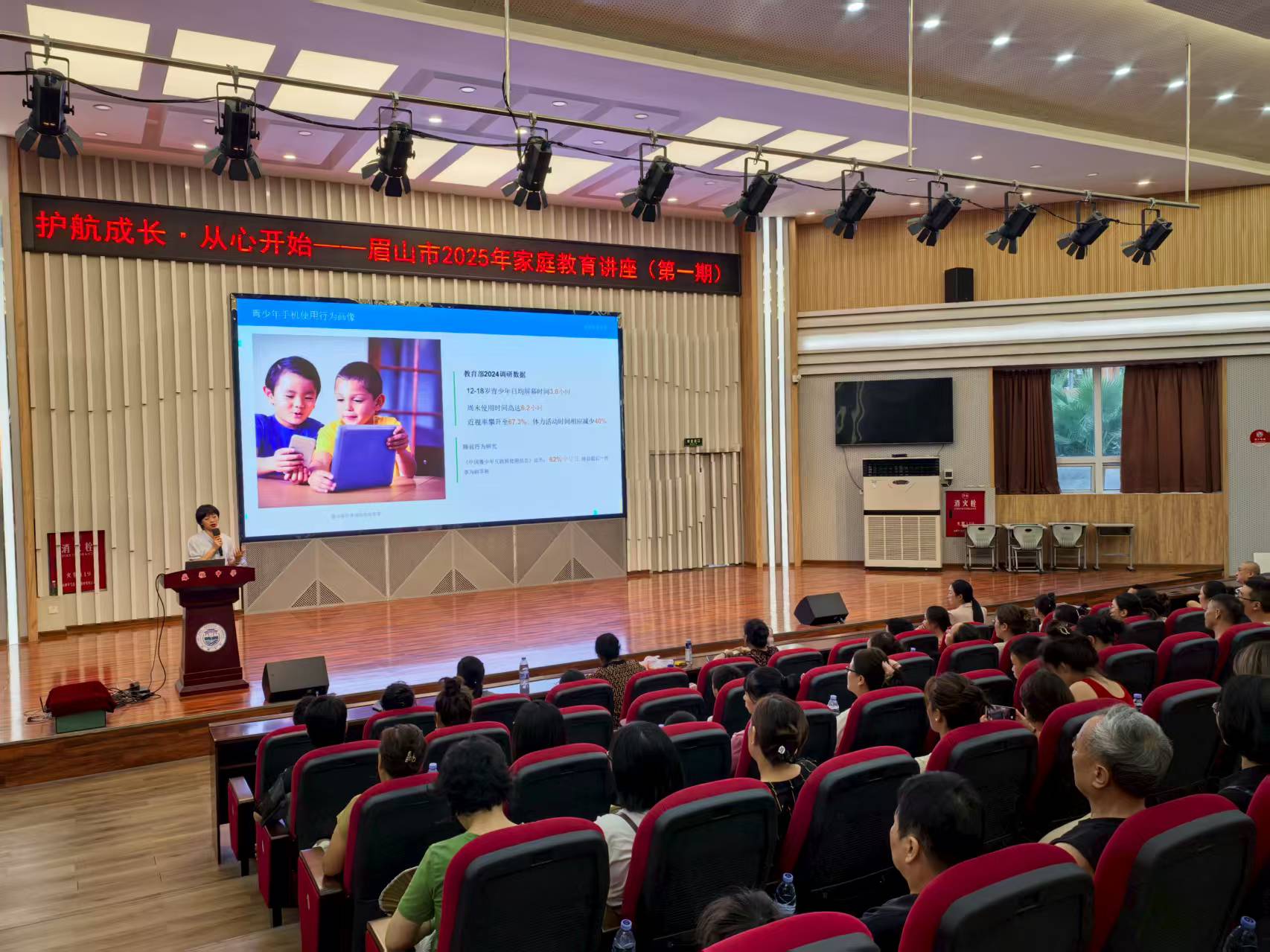 为推动全市未成年人心理健康教育走深走实,8月1日晚,由市精神文明建设办公室、市教体局联合主办的护航成长·从心开始——眉山市2025年家庭教育讲座(第一期)在苏辙中学子由厅举行,200余名家长及未成年人聆听讲座。
